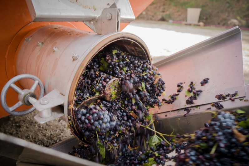 Après la vendange, les raisins sont généralement foulés pour libérer leur jus. Le foulage était autrefois effectué à pied, mais aujourd'hui, il est principalement réalisé par des machines. L'éraflage, qui consiste à séparer les grappes de raisins de leurs tiges, est également une étape importante. Les tiges peuvent donner des saveurs indésirables au vin si elles sont laissées dans la cuve. Le foulage doux est essentiel pour éviter l'extraction excessive de tannins des pépins et des peaux, ce qui peut rendre le vin amer.